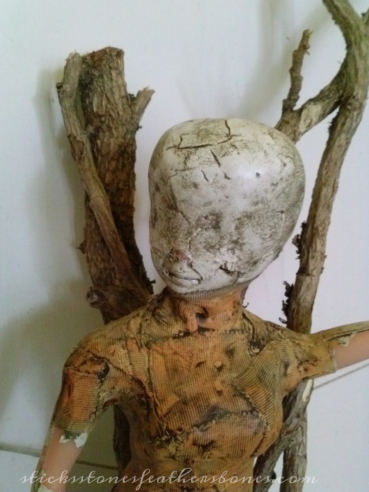 Art doll head drying, Paper clay and found objects